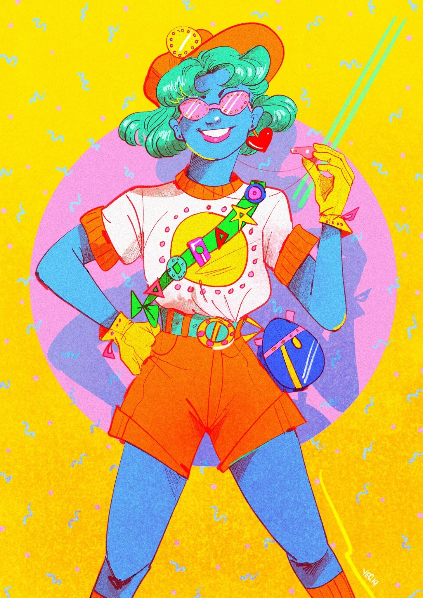 With a loose, energetic style and an eye for retro fashion, Australian artist Rhea Isaacs fills her illustrations with joy… and a hint of attitude. Working under the moniker Young Earl Grey, she isn’t shy about using bubbly pink love hearts, loud 80s colour schemes, high belts or zany stripes.