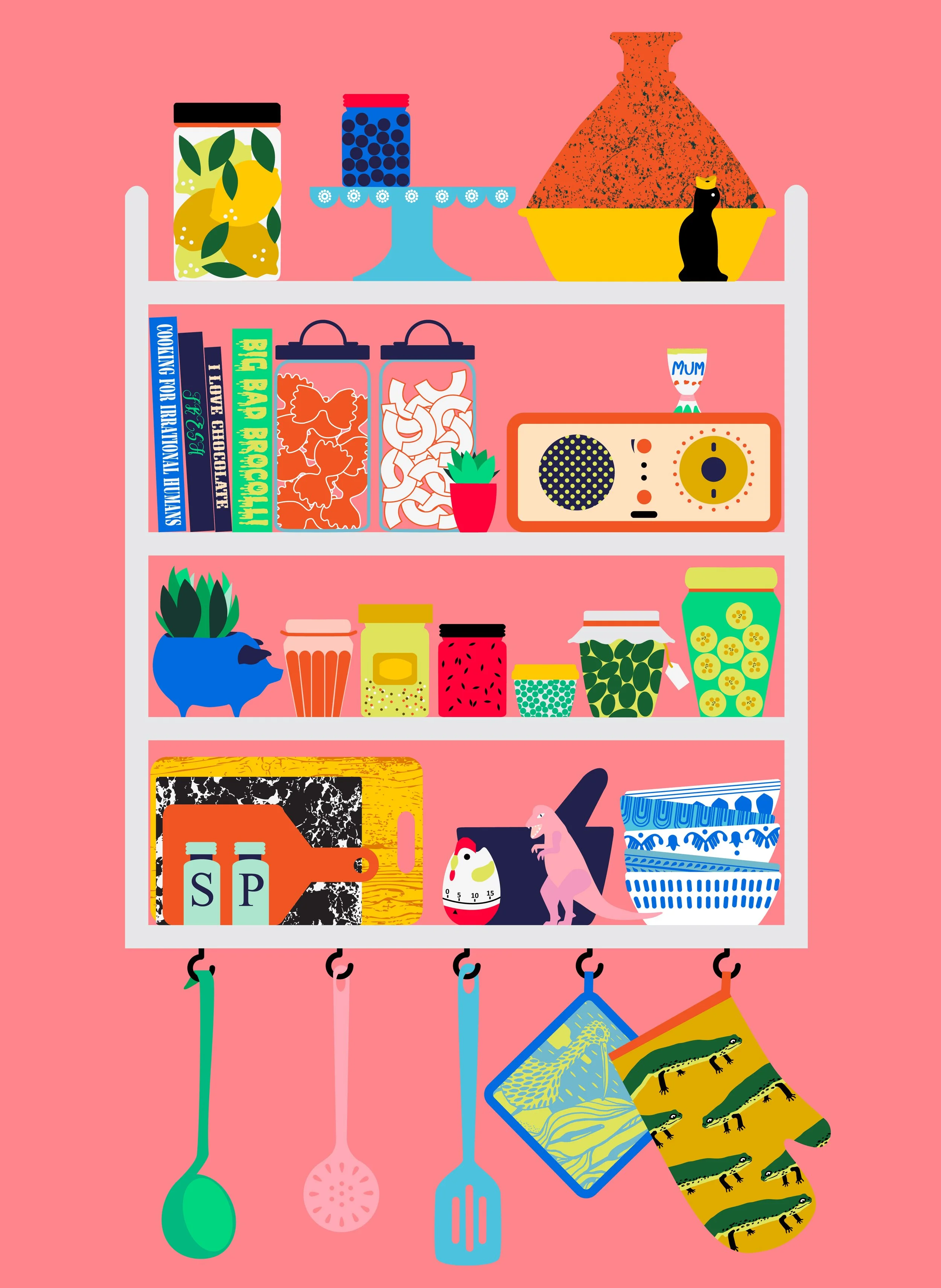 I live near the beach in North Cornwall, UK with my partner and two crazy and amazing children. My work is a reflection of everyday moments and experiences of life here in Cornwall, shared with my friends and family. My vector illustrations are colourful, bold and playful, with a splash of pattern and fun. I try to bring joy and humour to everyday occasions with striking compositions and by telling a story or illustrating a moment with the characters I create in my work.